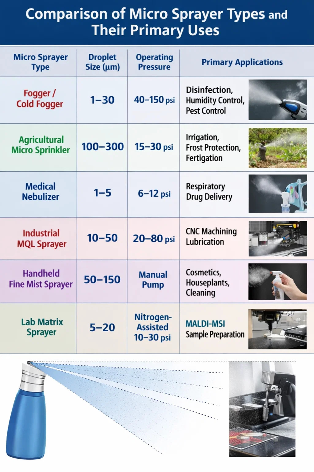 Comparación de tipos de micropulverizadores y sus usos principales